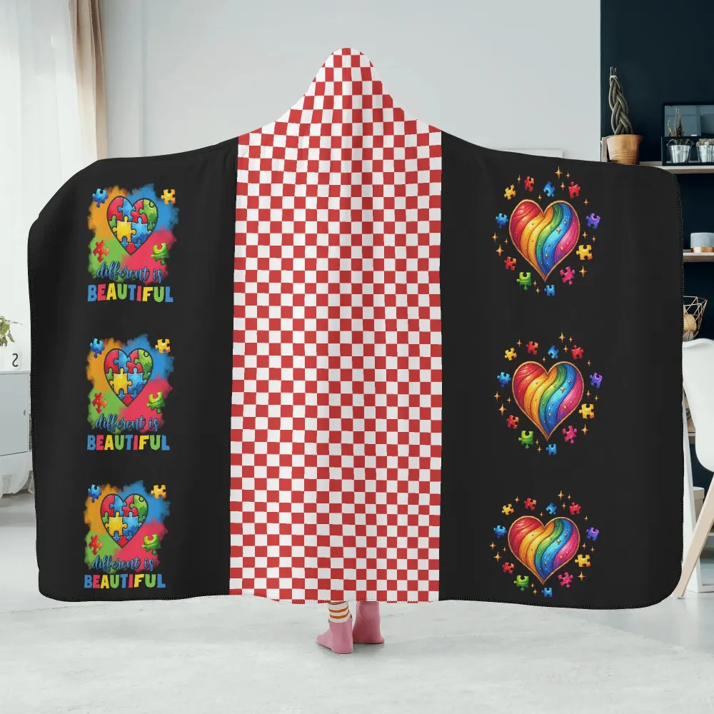 Symbolic heart puzzle patterns representing neurodiversity Vibrant checkered motifs for visual stimulation Inclusive color palette suitable for all users Practical Care & Maintenance Designed for hassle-free upkeep – machine washable in cold water with tumble dry on low setting. Maintains structural integrity and color vibrancy through repeated cleaning cycles.
