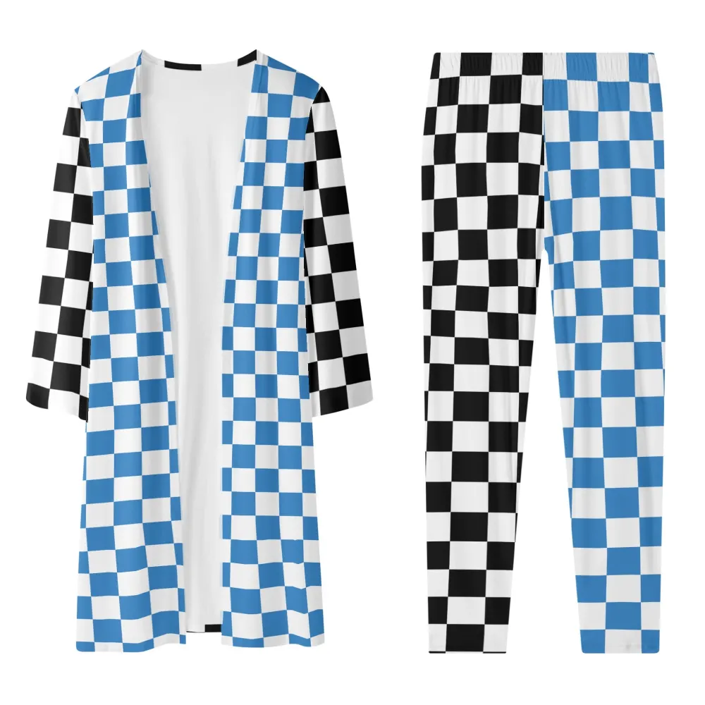 Elevate your wardrobe with our Stylish Check Mate Blue, White, and Black Women’s Long Sleeve Cardigan and Leggings Set, expertly crafted for the modern woman who values comfort and elegance. Made from premium POLYESTER material, this outfit not only offers durable and low-maintenance convenience but also boasts a sumptuously soft texture that feels luxurious against your skin.